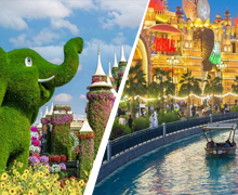 Cover all of Dubai’s best seasonal attractions in just one day! Stroll the colorful Dubai Miracle Garden, home to over 150 million flowers arranged in striking designs and shapes. Finally, immerse yourself in the lively atmosphere of Dubai Global Village, where the traditions, cuisines, and cultures of over 90 countries will leave you in awe. With thrilling rides, lively events, and exceptional shopping, this open-air attraction caters to visitors of all ages.
