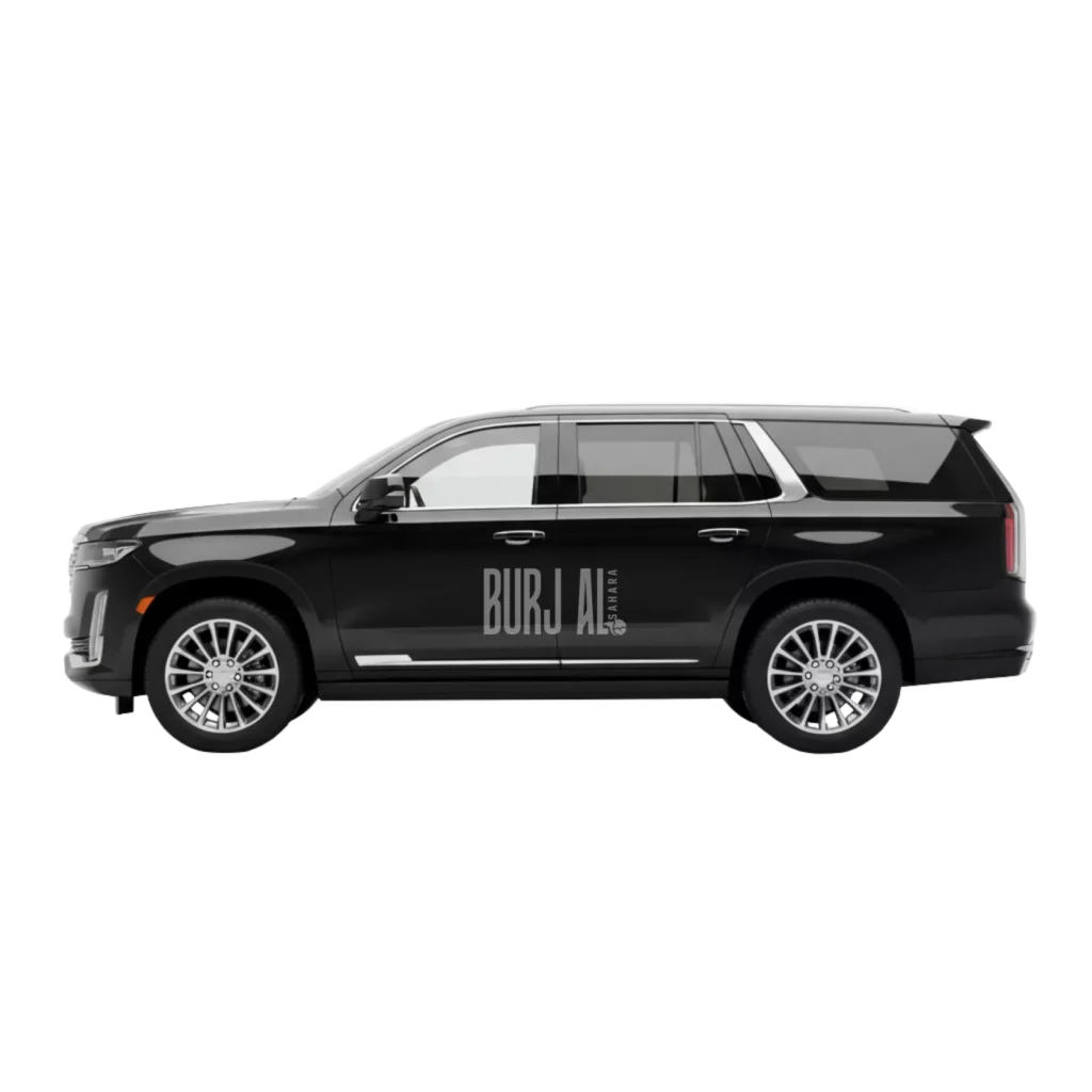 Get the best chauffeur drive experience across the UAE through BurjalSahara. Our professionally trained drivers with a range of premium cars, including the Cadillac Escalade ESV 2025 are available 24×7. Be it a limo pick-up for your VIP guests at the airport or a first-class tour of Dubai / Abu Dhabi by a uniformed, professional driver. Make a hassle-free booking today! Lowest rates including clean, disinfected car, fuel, Salik (toll) charges, driver and VAT.
